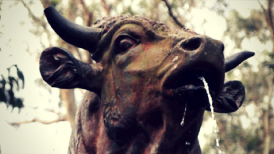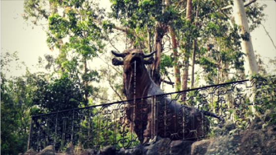 Se trata de una escultura realizada en Francia que una vez llegada, fue subida por fragmentos y armada en su lugar asignado. De su boca fluye un chorro de agua mineral.