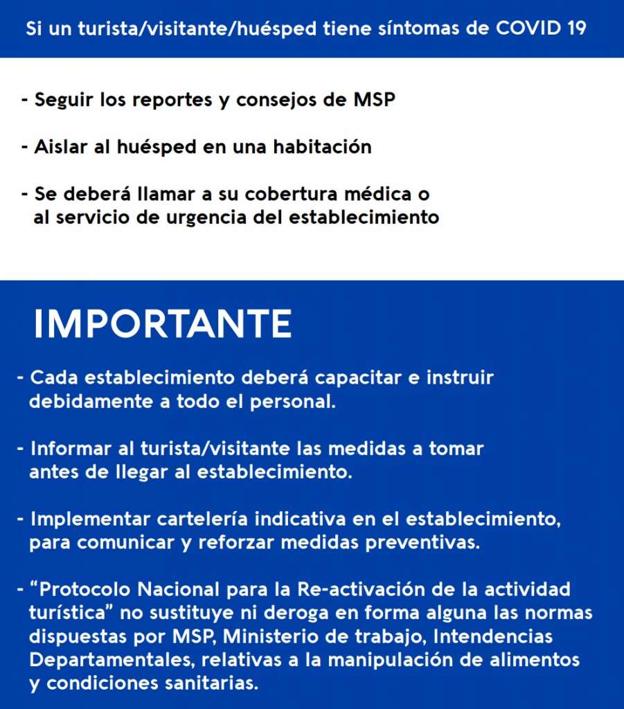 En habitaciones, piden reforzar la limpieza de puntos críticos: escritorios, control remoto, teléfonos, picaportes. Todos los elementos textiles deben ser sanitizados entre huéspedes y se deben incorporar productos de limpieza desinfectantes virucidas debidamente habilitados. Por último, piden cubrir controles remotos.
